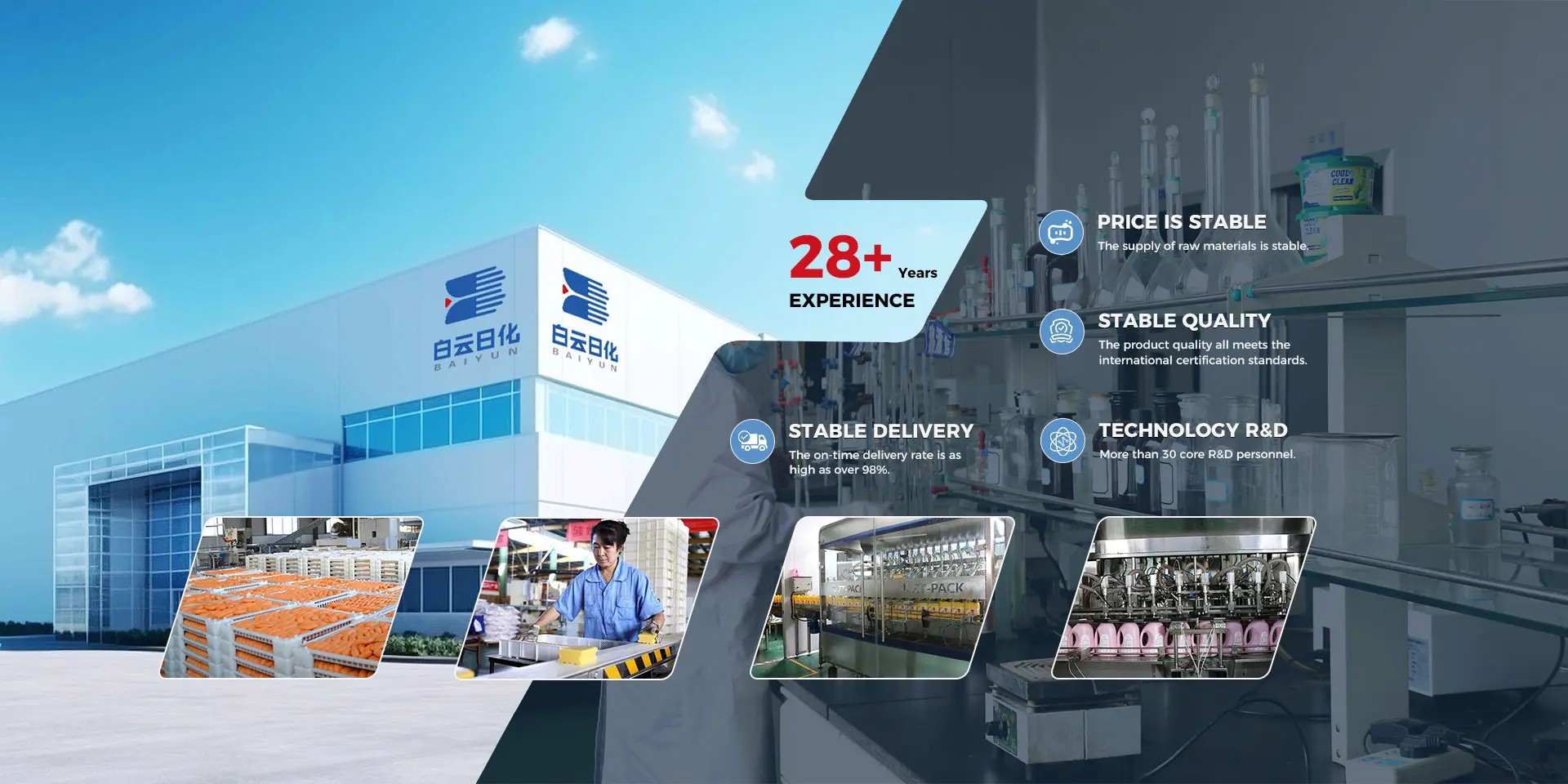 Hebei Baiyun Daily Chemical Co., Ltd. Established in 1997 and has been deeply involved in the household cleaning products industry for 27 years. The company always adheres to the production principle of “quality first, customer first”, creates high-quality cleaning products, meets the needs of domestic and foreign market customers, and has the widest business scope and considerable influence in the industry among similar enterprises in Hebei.